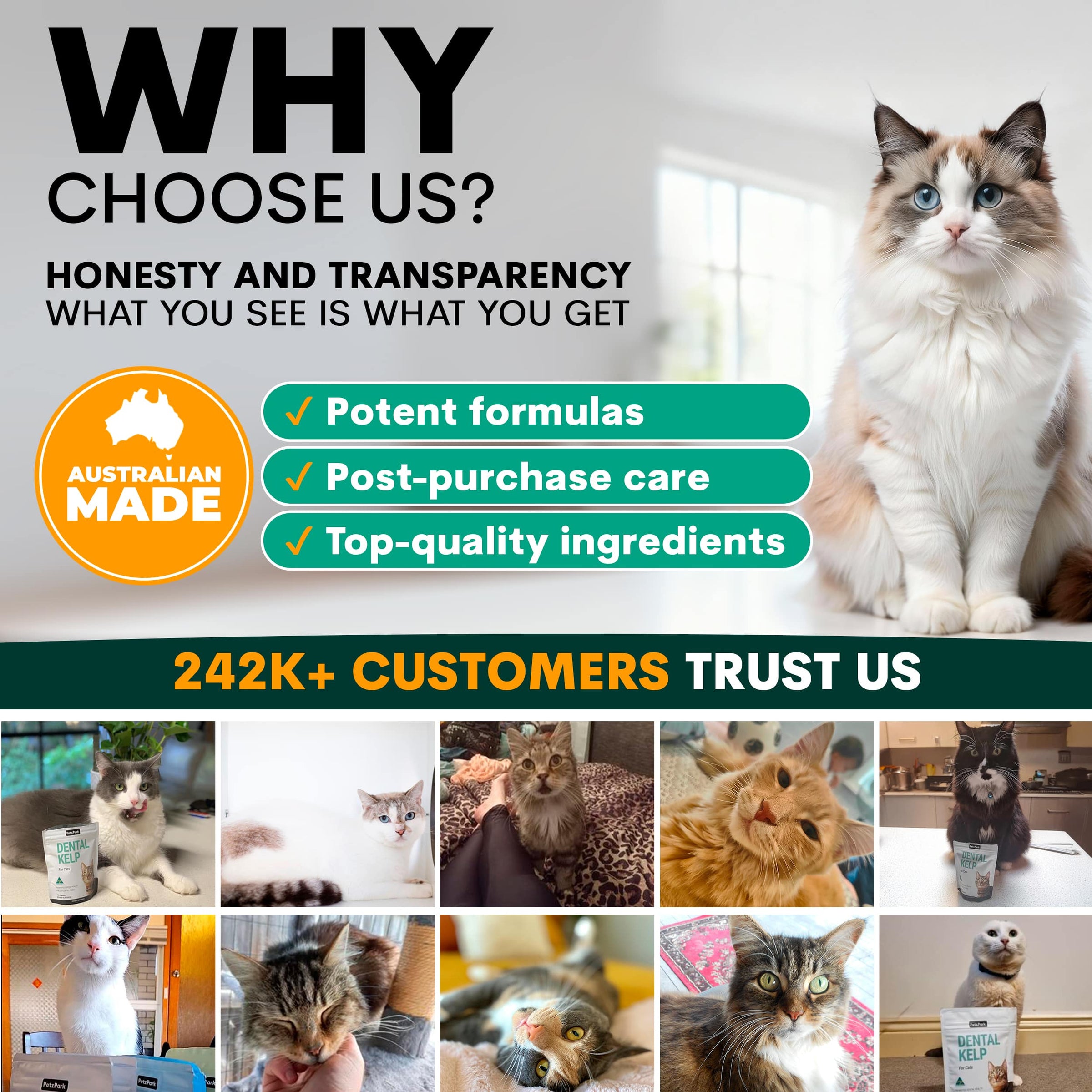 Excellent news, Rhenaud! We really appreciate your taking the time to share this wonderful feedback with us and for leaving us a glowing review! We're absolutely thrilled to hear that your cat loves our dental kelp for cats, who, by the way, looks really adorable in this lovely photo you shared. You mentioned that there haven't been any tooth issues, which is exactly what we love to hear!