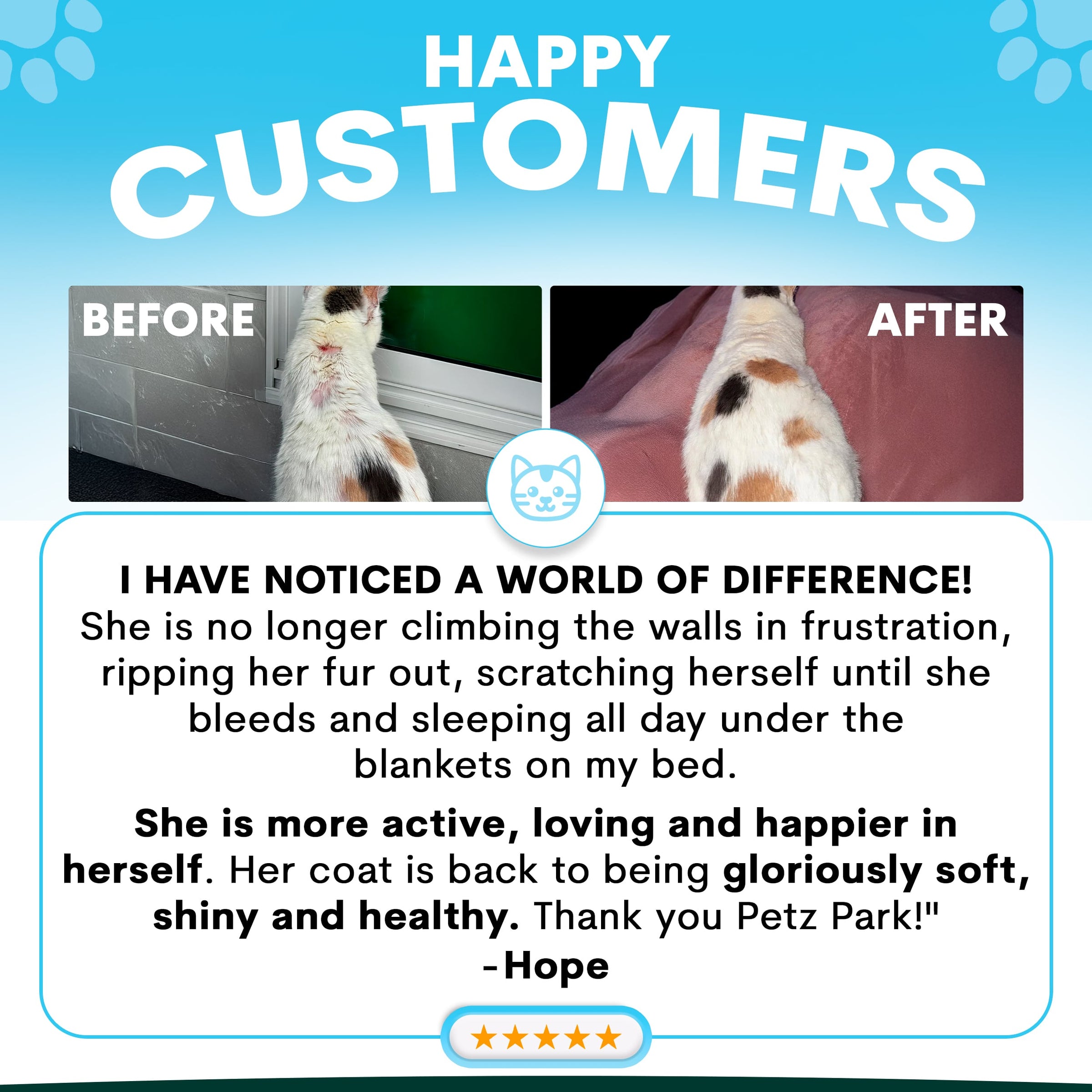 What absolutely incredible news, Hope! We're so thrilled to hear about your beautiful girl's amazing transformation with our anxiety, skin and coat, and probiotic supplements for cats combination! This is exactly the kind of success story that makes our hearts sing! 💕