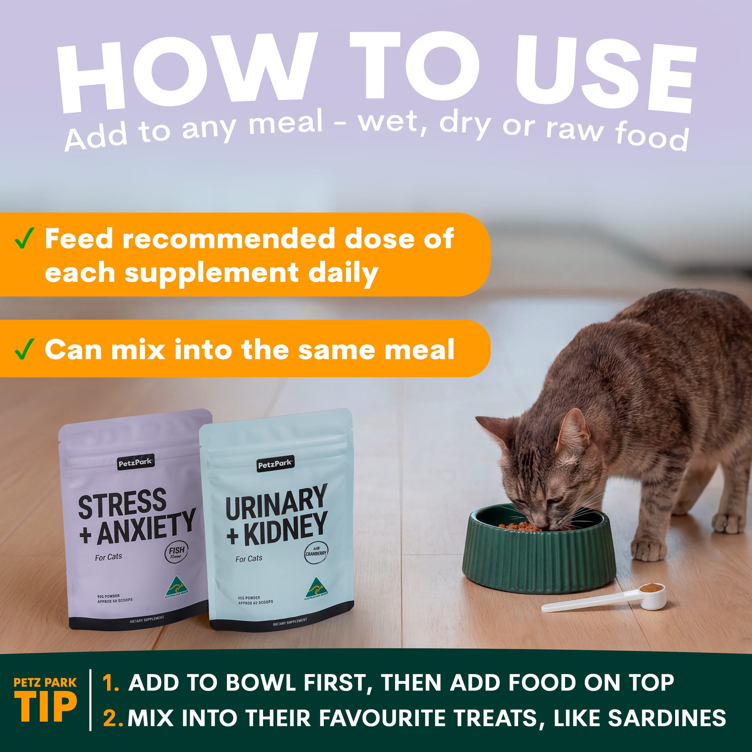 I add 3 scoops of each powder (he is 5kg and she is under 4kg) in the bundle to their raw diet and LOTS of water, mainly for the boy's kidney stones.…